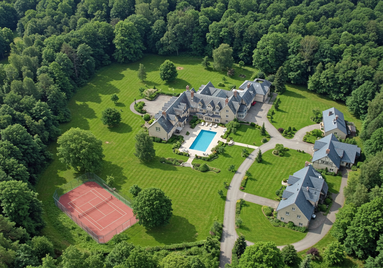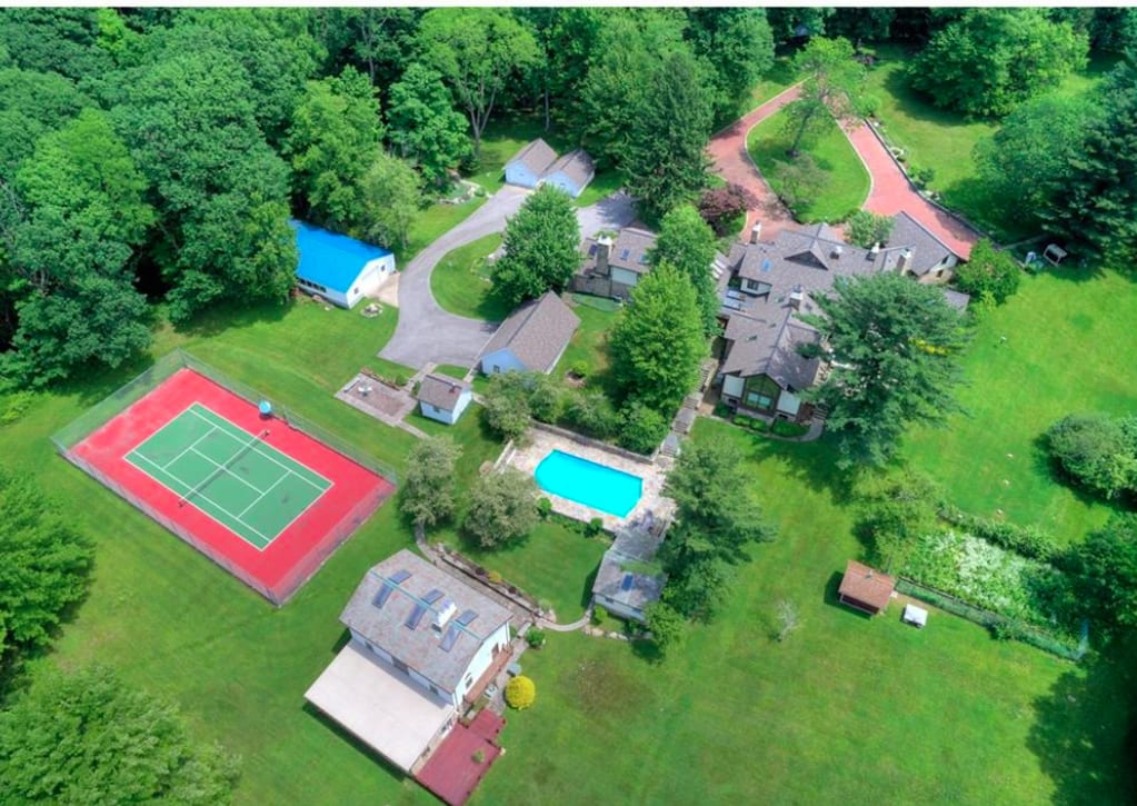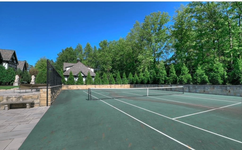 This stunning property features an attached guesthouse with a full kitchen! Summers will be spent on the stone terrace overlooking the property, playing tennis or lounging poolside.